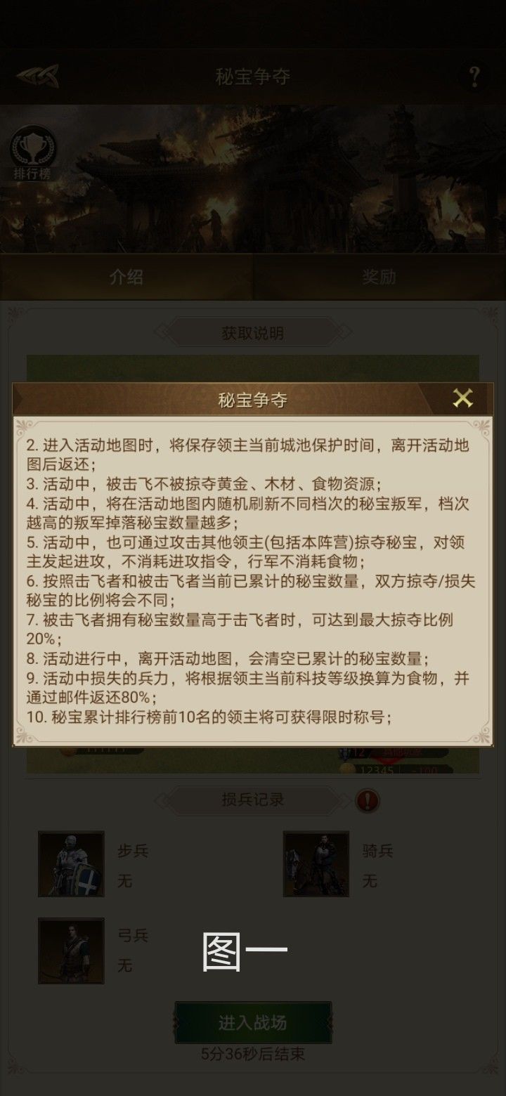 秘宝争夺是每周日8:00~8:30,玩家可以根据自身兵员情况来参加这项活动。