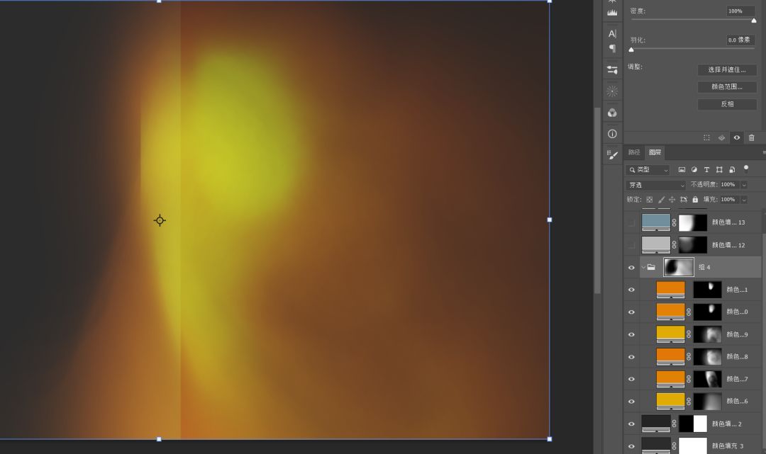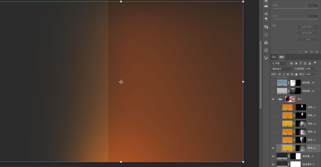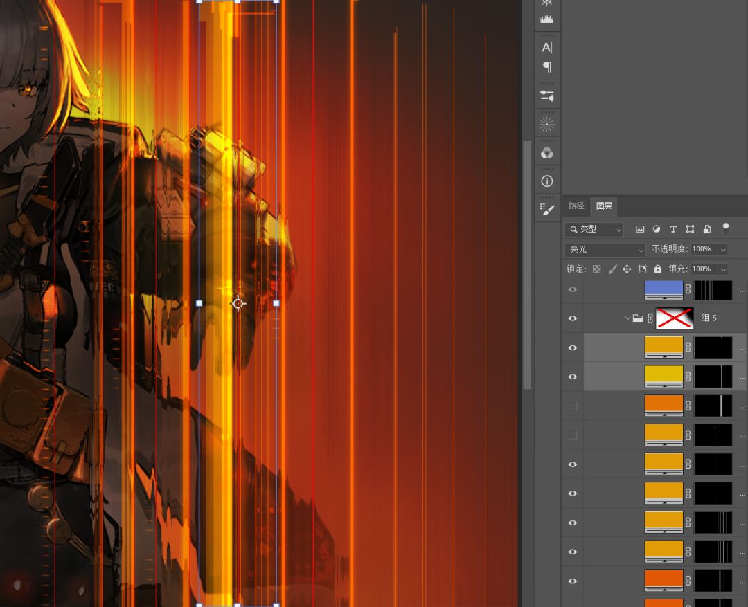 还是利用纯色层+蒙版的形式,先给纯色层添加黑色蒙版(按住Alt点蒙版图标),然后拿白色画笔画一画就行,这块请自由发挥,也可以参考图中的样式。图层混合模式为颜色减淡。最后选中所有光效层,按Ctrl+G给它们打组,你可以给组添加蒙版再次调整。