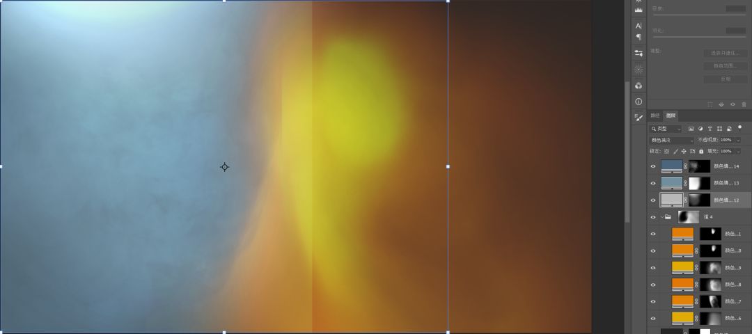 操作与暖光部分差不多,雾气不会做的话,建议下载一个雾气笔刷。最后选中所有图层,右键转换为智能对象,你可以双击图层缩略图再次进入编辑。