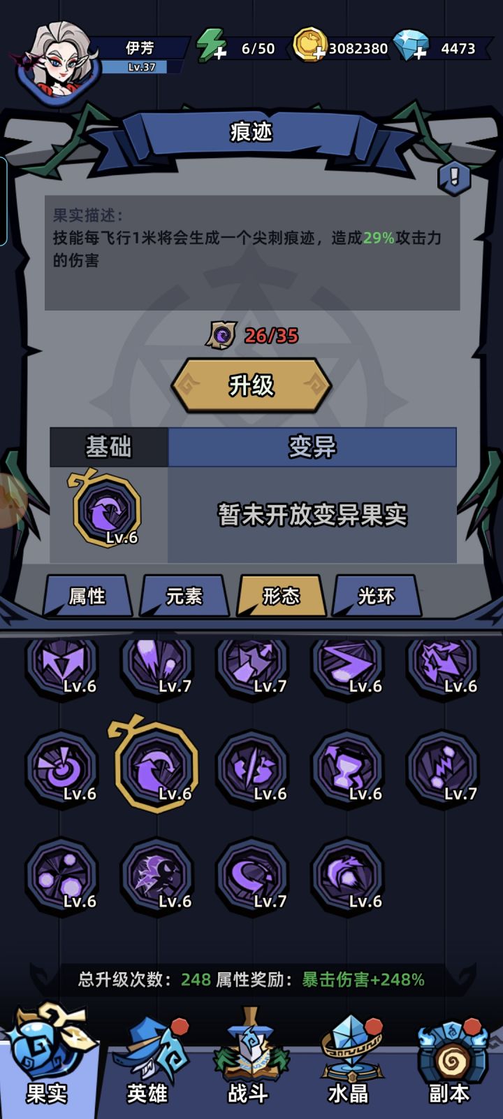 其次还有关于局内果实刷新的小技巧,部分果子是有唯一性的,这分为两种情况。第一是属性果子的唯一性,属性果子一般只会在变异和普通之间出,如果你想要这个属性果子的变异的话,那你有时候就必须要做一件可能算抽象的事情,那就是刷掉这个果子的普通的找变异的,不过一般不推荐做这样的事情,冰属性的果子,无论是普通变异的都挺好用的,然后火毒的变异果子基本上就我这个镇楼图中的两个好用,另外一个变异的火属性果子也有点用,但是我觉得不如这个。另外一个也算是有一点点用的小技巧,因为你的部分果子有唯一属性,那么就意味着你有可能刷完这个果子立马重新来一个一模一样的,但是如果你不刷的话,这个果子就再也不会出现了,所以说你就可以留着你这个虽然没有什么用的果子然后不刷新就行了,你可以去刷新一些有那么一点用,但是对你没有什么太大提升的果子,比如生命值提升技能飞行速度这种,到最后决战再看你有没有重置的次数,酌情刷到这一些有唯一属性的果子。那么这样的果子有:痕迹,秒杀,旋转,追踪,储存,链接,身外身。