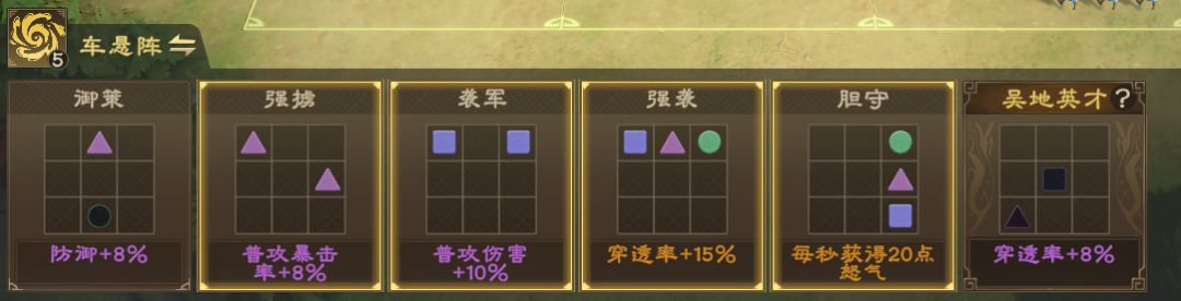 推荐阵法:车悬阵(下位替代:风扬阵)