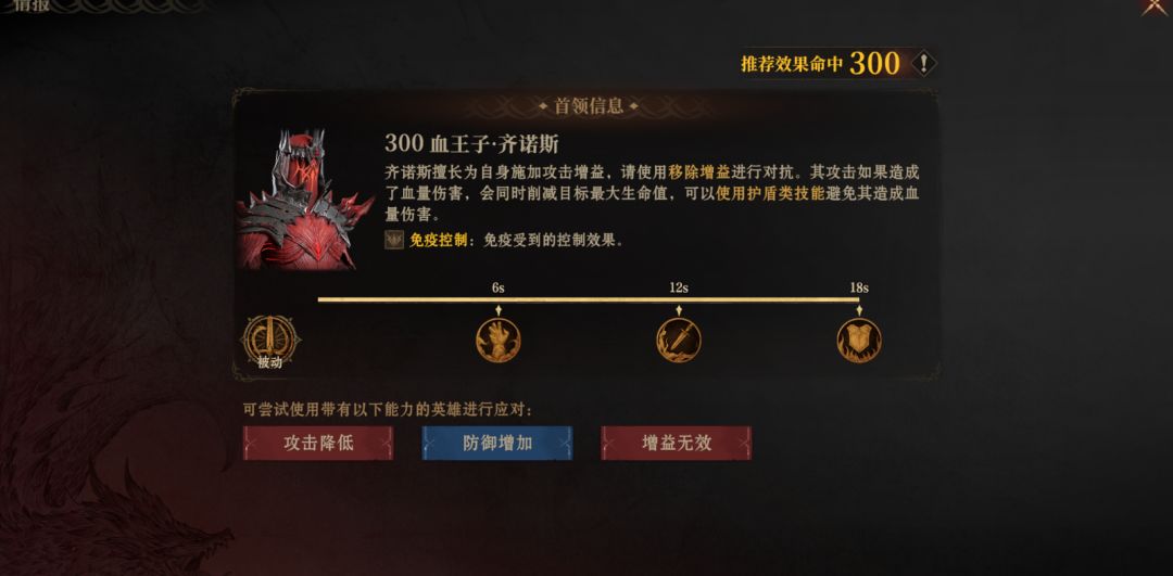 血王子装备本有两个难点,一是会给自己释放两个增益状态,如果不及时驱散的话,会对我方所有人物造成大量伤害,二是大招会移除我方一个增益状态,然后对没有增益的人物伤害加深,所以在他释放大招的时候通过施加带有增益状态的护盾技能会大大降低其伤害。