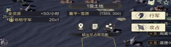 武将达到三级即可打二级土地