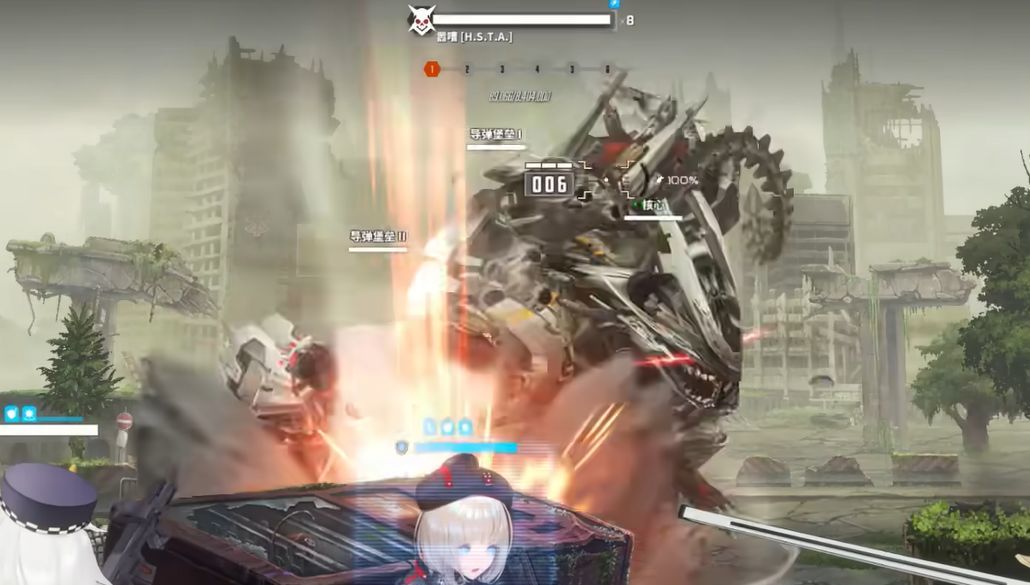 要是nikke练度比较低,吃不消可以嚣嘈的捶地+导弹连击,你可以手操妮姬在在发射飞弹的时候躲到掩体里,让掩体为你均分伤害。同时记得控制好爆裂时间,确保队伍能够把红圈打掉最后千万千万不要打掉它的核心零件,打爆核心=团灭总之还是个比较简单的boss,没什么难点和操作点