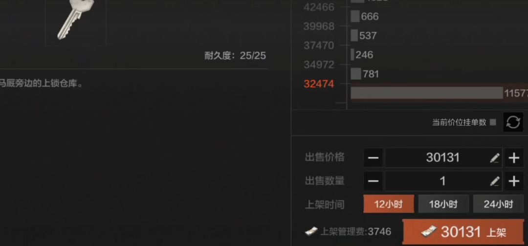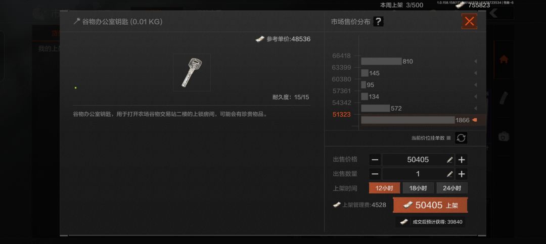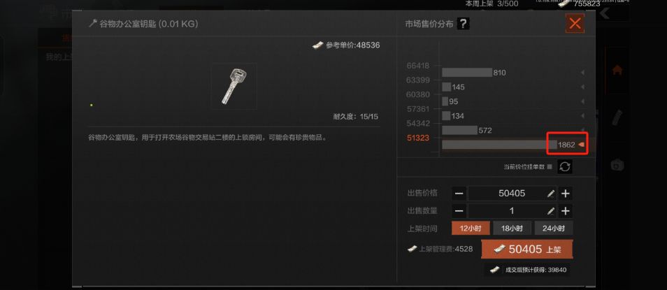 这里我隔了3秒钟再次打开出售,可以看到钥匙已经卖出4单啦,这说明谷物办公室钥匙的销量很大,需求旺盛!