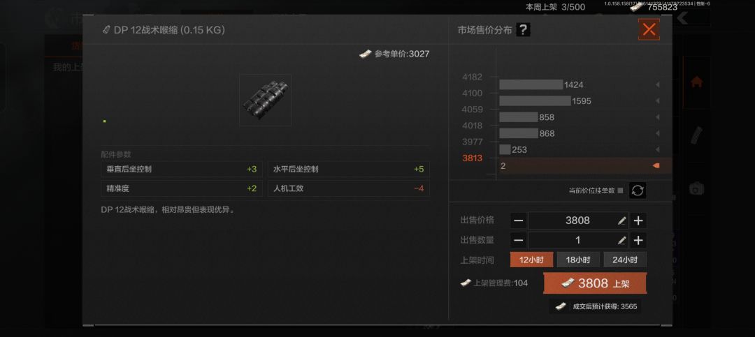 就拿这个DP12的战术喉缩举例,最低价在我三秒钟刷新后居然又出现一单!