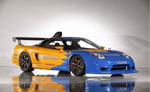 完美还原由Spoon改装与调校的NSX-R GT,Spoon标志性的蓝黄车身涂装让此车在车群当中突显而出。