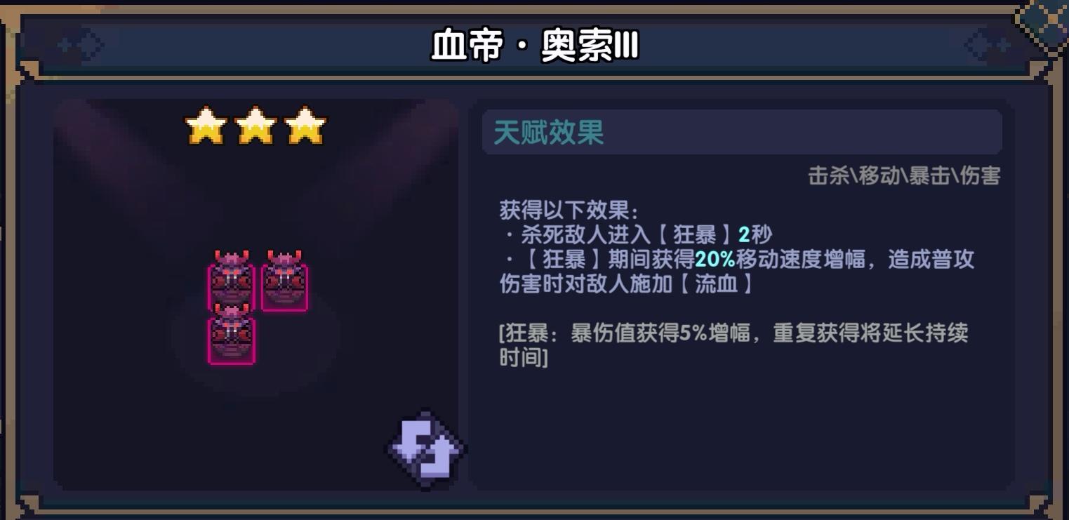 血帝:杀怪续狂暴,群密、竞技场好用,且占格子少