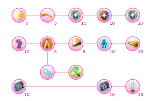 接下来是骑士泳姿(最下面最左边的)和骑士誓约(最下面最右边的)骑士泳姿后面的是它的强化,可以存受到百分之30的伤害,也就是你受到了10000伤害它帮你存3000(要仇恨在你身上才是百分之30不然只有百分之10),你再开一次泳姿就能回3000血,最多可以存99999来着,开局必开用来应急回血