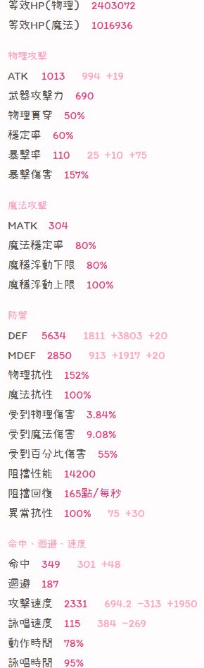 那就会变成这样,主要是料理的50双抗和炒饭的25双抗加的太多力!而且剑坦可以不用吃加仇,吃个双抗和mp就行了,哦这些都是不算减伤的哦!