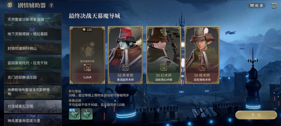 或选择【使用剧情辅助器】进入副本,根据当前职业自动补充剩余3名NPC队友协力挑战