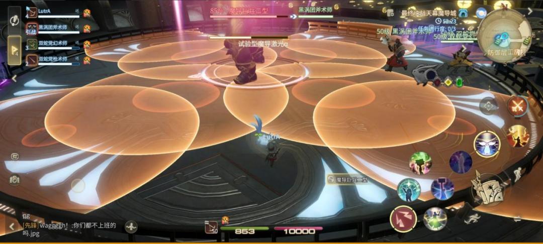 试验型魔导激光β:点名全体成员的范围AOE,分散站位避免伤害重叠。