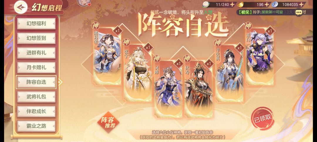 在【武将阵容】板块里面我会给大家介绍为什么这样选!