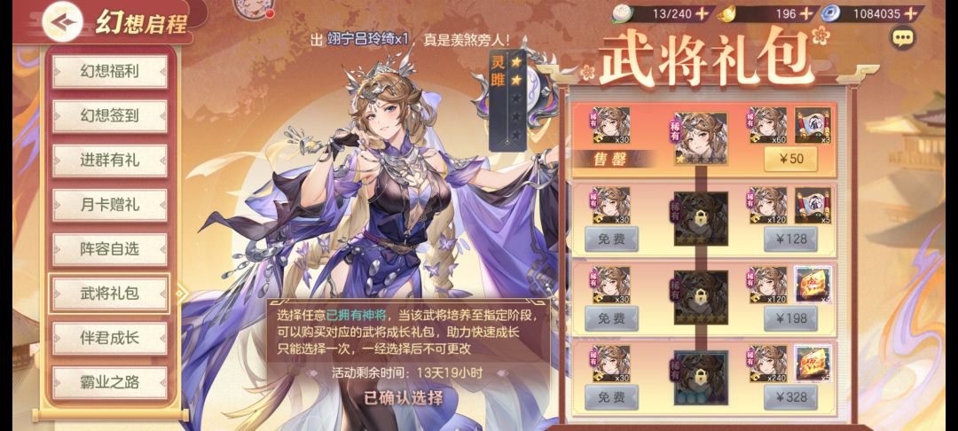 每天特惠包子、首充神将、魂将抽卡卷、武将礼包、终身卡、战令、霹雳进宝,量力而行吧。