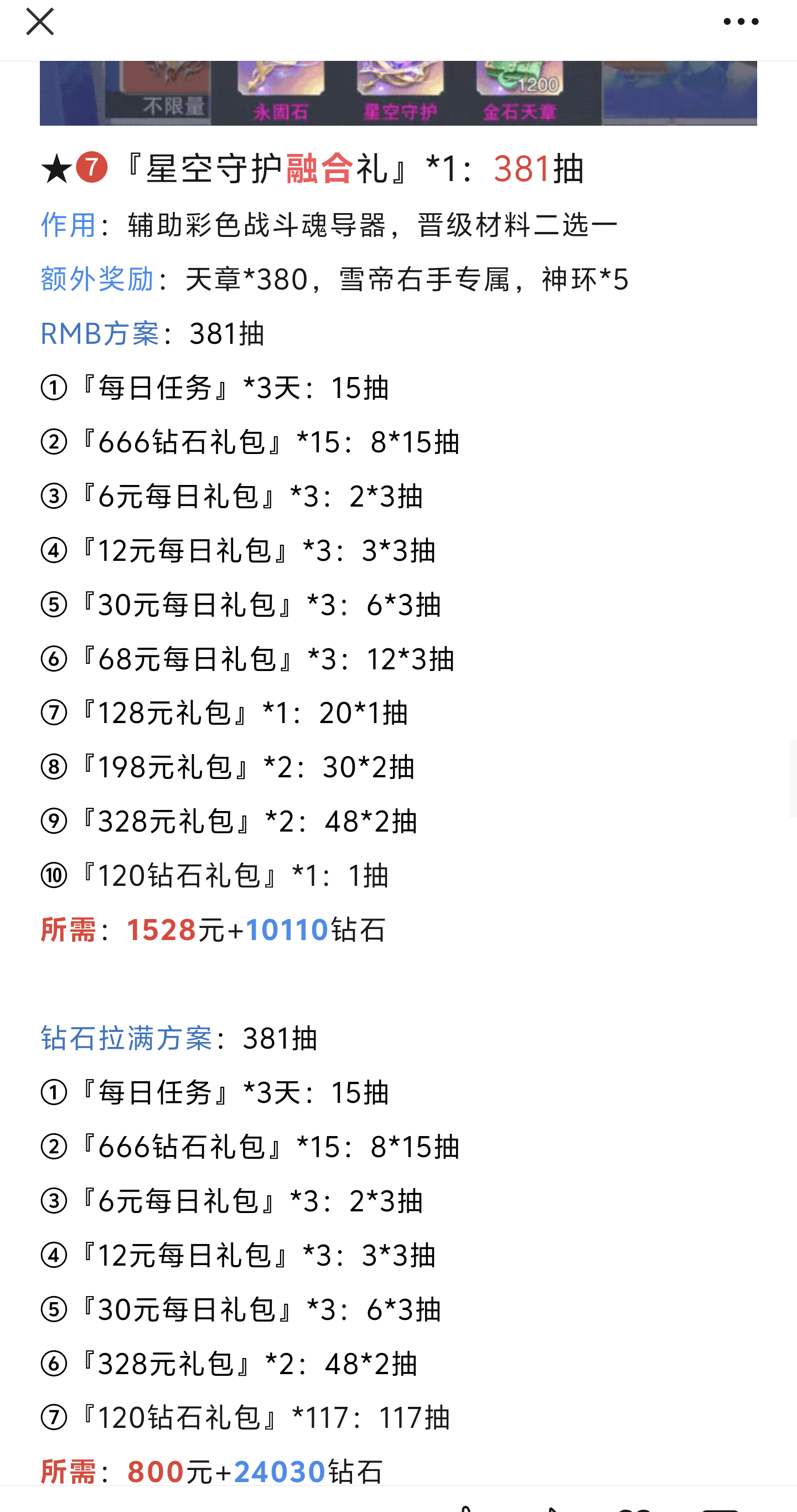 星空守护融合礼,神环1-6个啥价,雪帝右手专属,竞技场开赛了