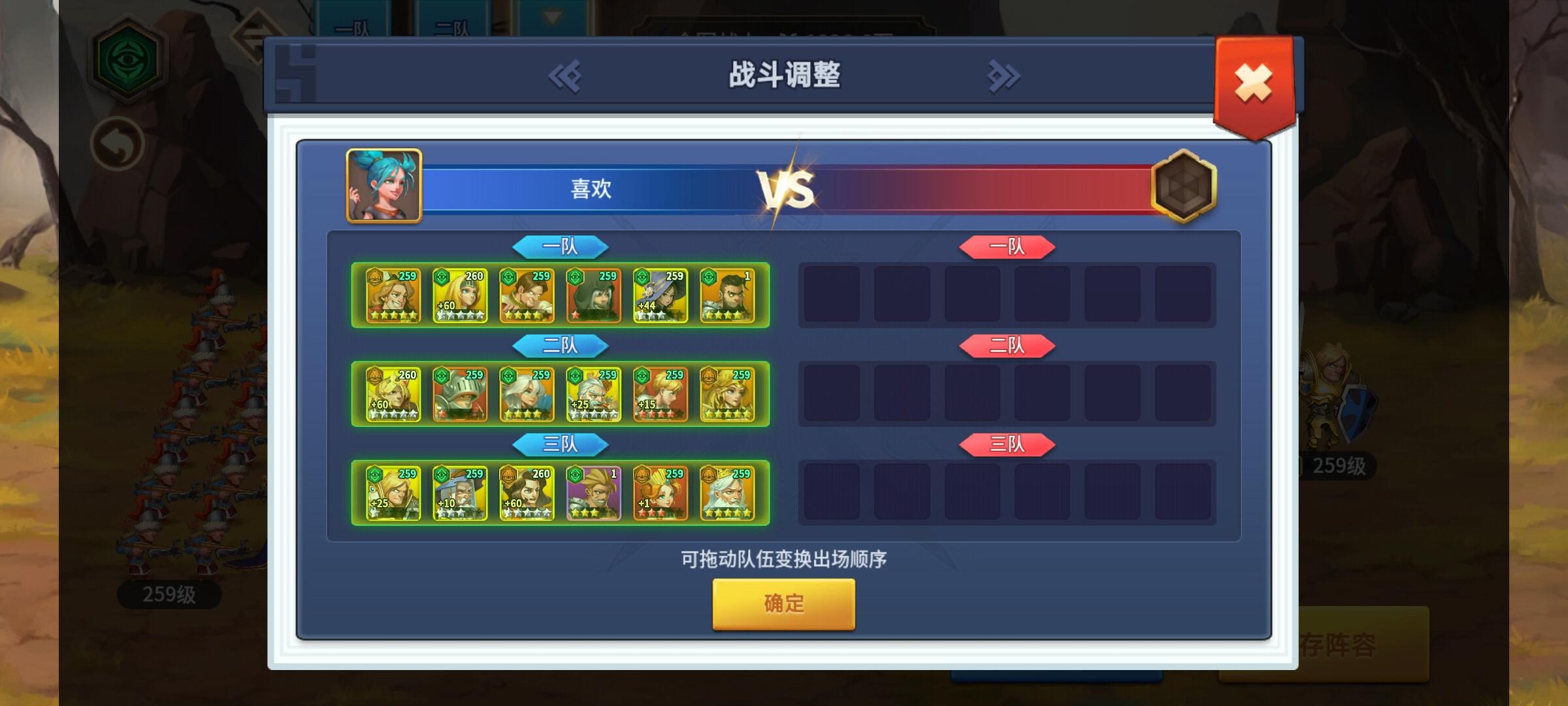 三队:罗兰,梅林,路易十四,叶卡捷琳娜,查理曼,剩余随便上。