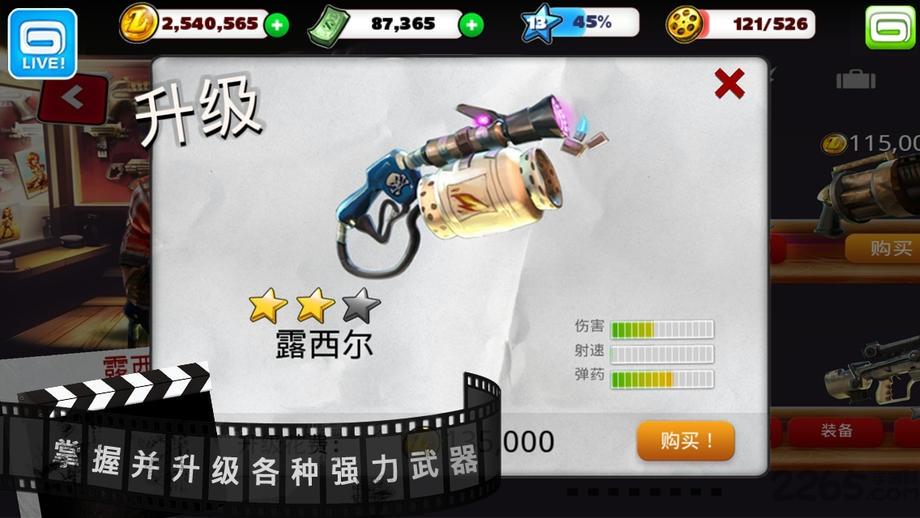 武器系统无疑是《僵尸坞》的一大亮点。游戏中为玩家提供了超过 30 种外形酷炫、杀伤力爆表的狂野武器。有龙头造型的 “残忍杀器”,其强大的伤害几近满槽,能瞬间让大片僵尸灰飞烟灭;还有棒棒糖做枪管的 “胡桃夹子”,名字听起来梦幻甜美,实际战斗力却不容小觑。这些武器不仅威力强大,造型更是创意十足,给你带来前所未有的射击体验。玩家只要等级达到相应要求,就能解锁心仪的武器。除了直接购买高级武器,升级现有武器也是个不错的选择,让你在战斗中尽情扫射僵尸大军,享受酣畅淋漓的战斗快感。