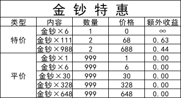 金钞特惠(货币购买)