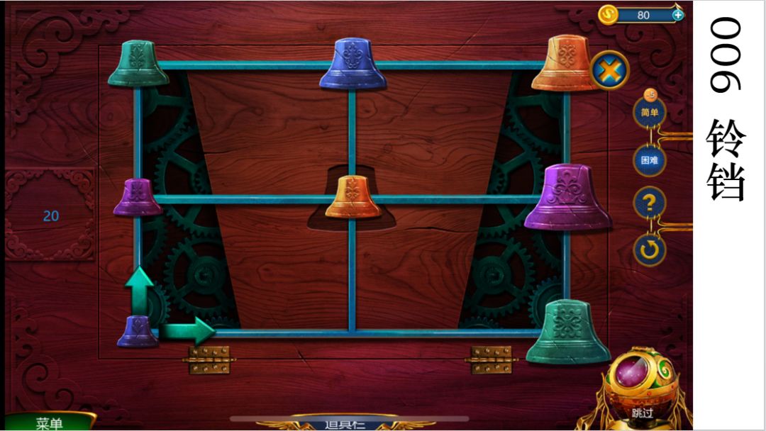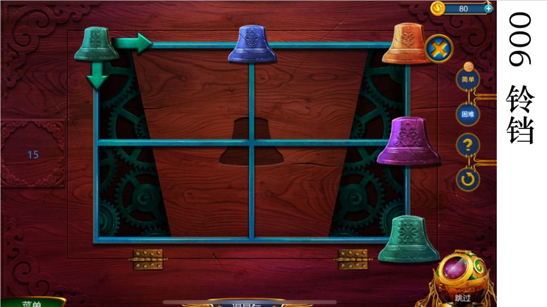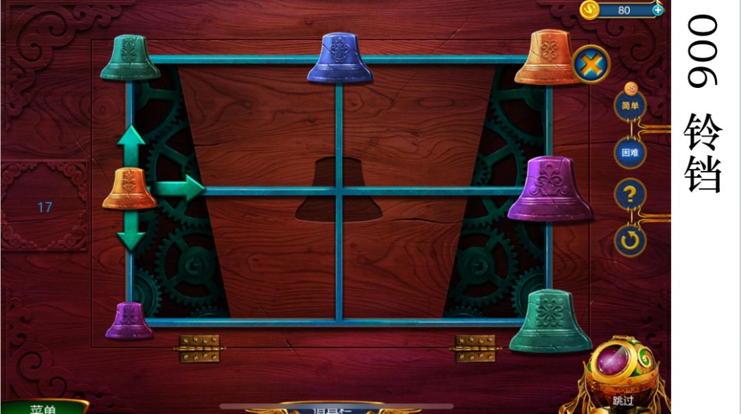 2.吃掉紫色铃铛后往下,再把橙色铃铛移过来。