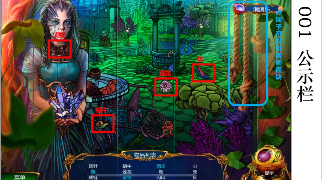 点右边的绳子可以切换画面。