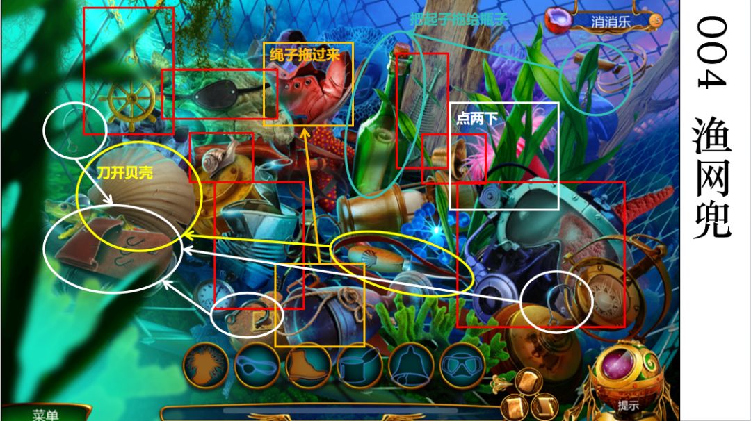 3.橙色方框:绳子拖向鞋子,绑起鞋子后点鞋子