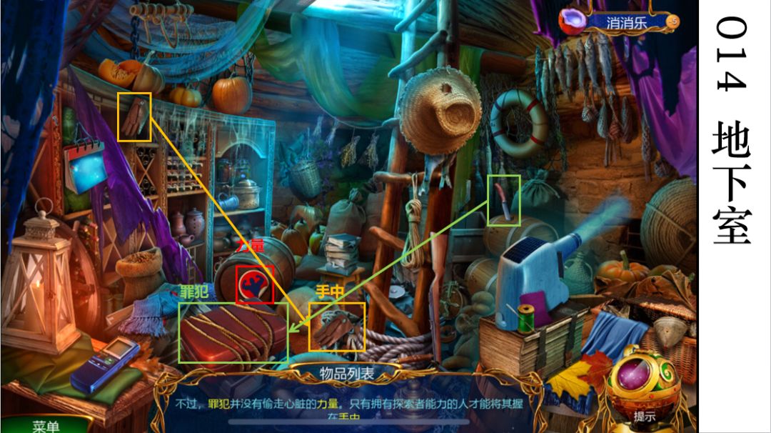 2.橙色方框:罪犯。先点开纸,再点纸上小偷的图案。