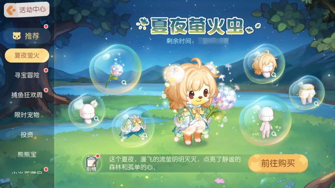 活动介绍:这个夏夜,漫飞的流萤明明灭灭,点亮了静谧的森林和孤单的心。体验剧情即可获得丰厚的奖励。