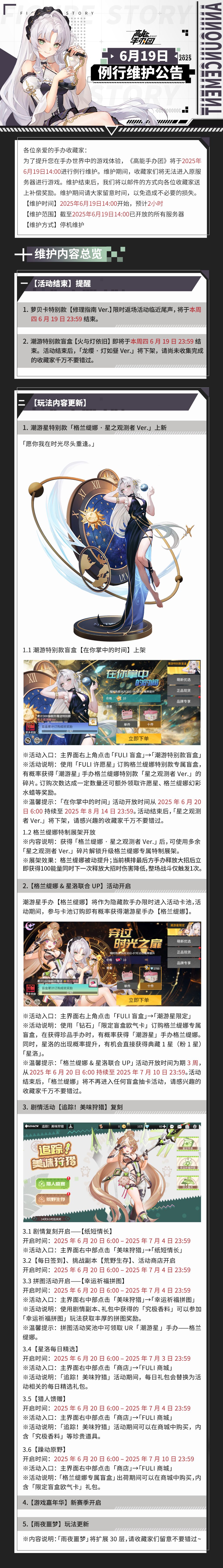 各位亲爱的手办收藏家:为了提升您在手办世界中的游戏体验,《高能手办团》将于2025年6月19日进行例行维护。详细公告内容请点击下方图片查看