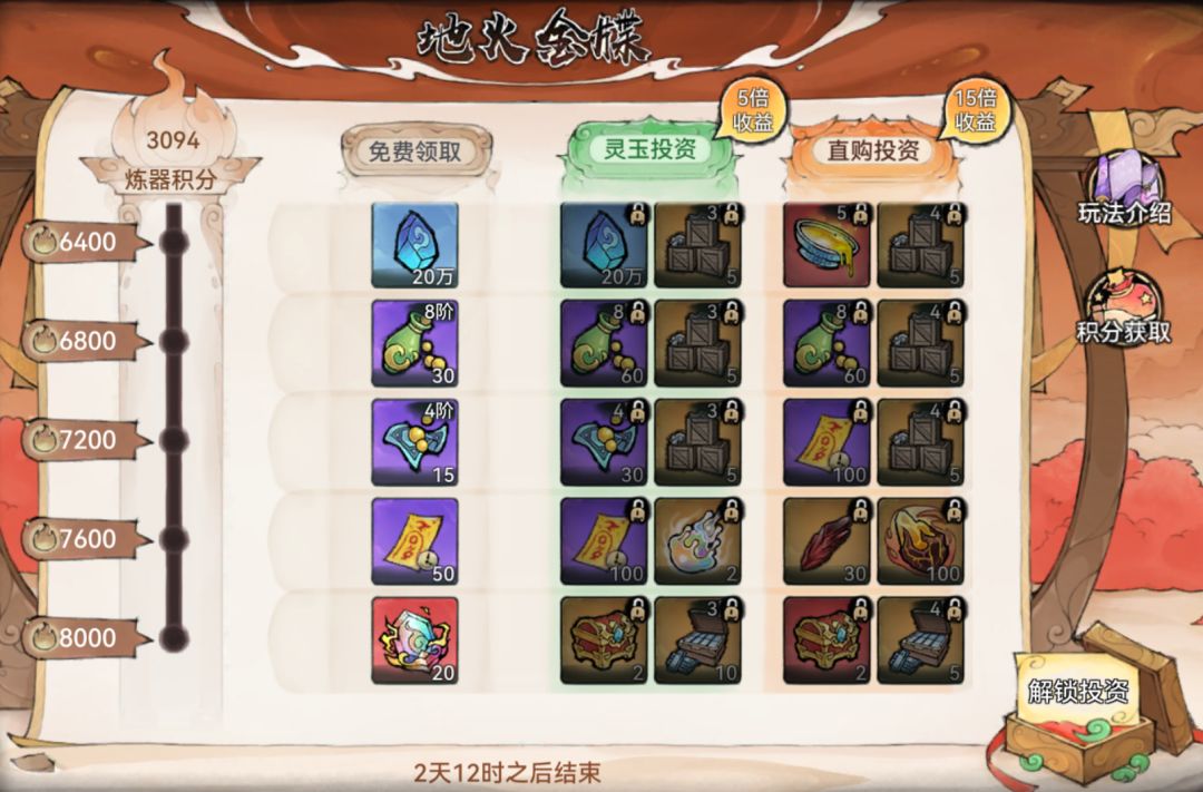 当然,祖师也可通过解锁投资,获取更多积分奖励。