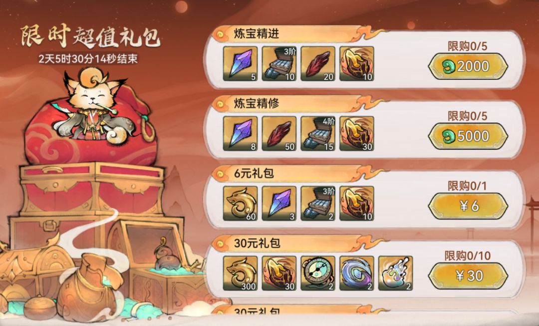 ※ 活动结束后,活动材料地火精、玄虚砂、两仪盘、九转髓将自动兑换为灵石奖励,请祖师及时使用。
