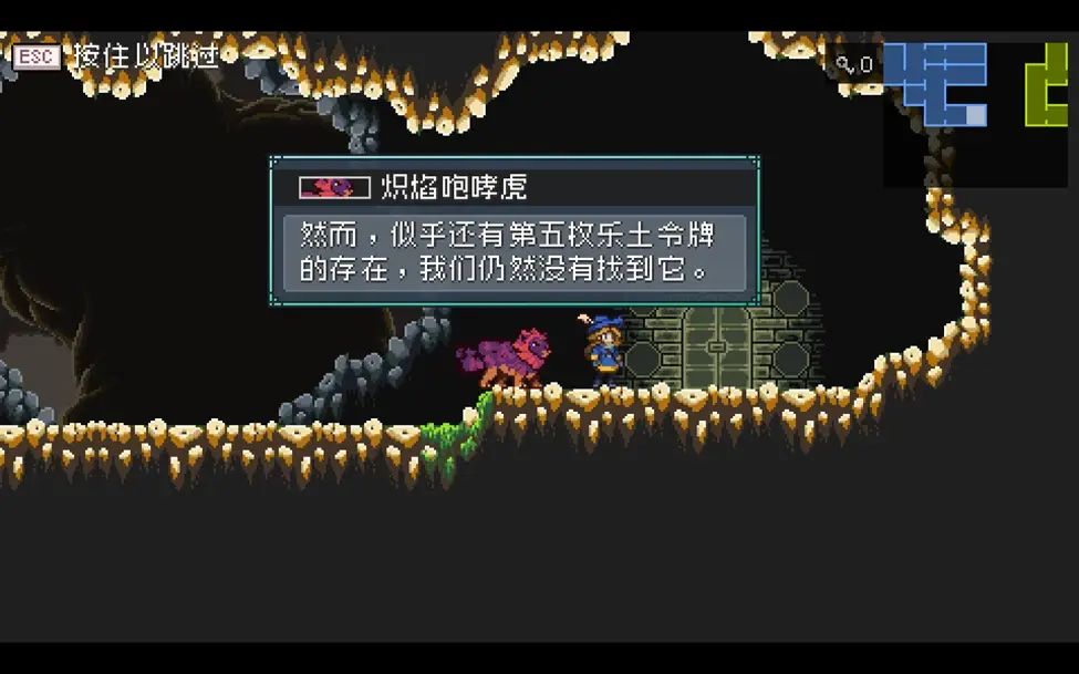 来到苍蓝洞穴最底层,集齐四个乐土令牌后靠近这里会触发剧情,提示我们要去地牢找炼金术士询问最后的令牌的下落。