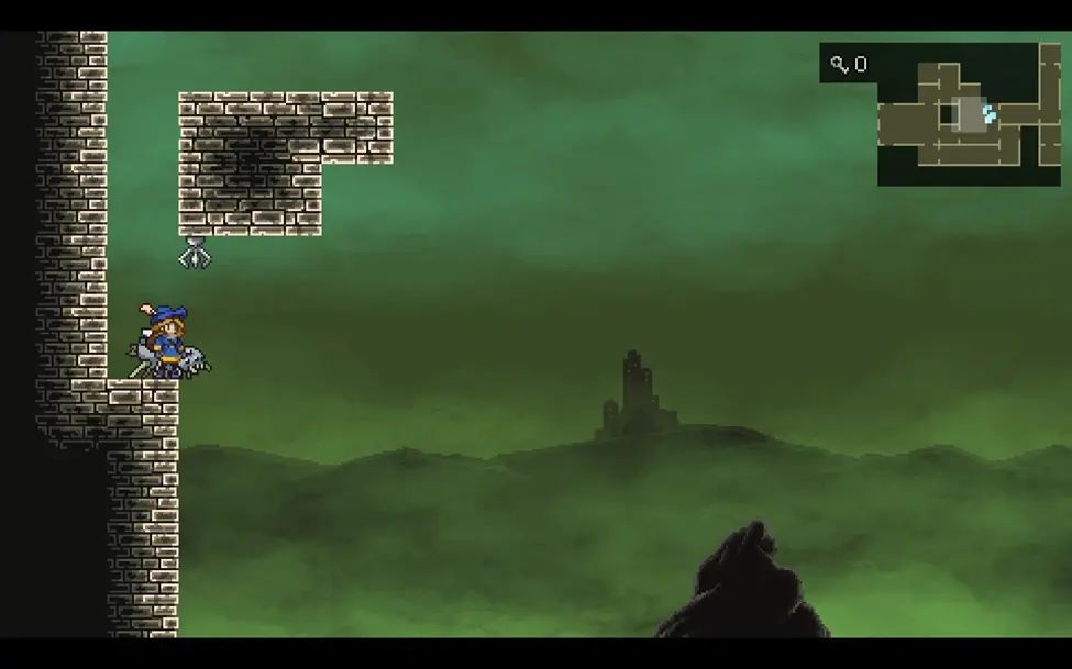 之后往下,从房间左下出去来到外头,走到图中的桥上后对面会有个神秘人扳动机关撤掉石桥。