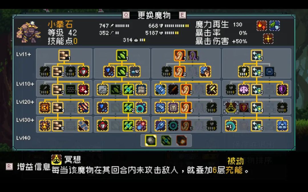 地图魔物提供的能力有:银蛛/大巫妖——抓钩巨岩怪/普罗米修尸——召唤巨石普通魔物