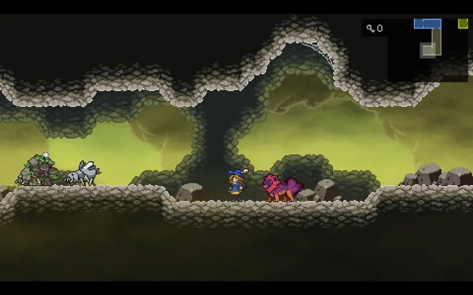 来到地下世界,如果之前没抓蛮兽和银蛛的话记得在这里抓一只银蛛和找巨岩怪刷一个巨型种子,这张地图有不少地方都需要这两位的能力。