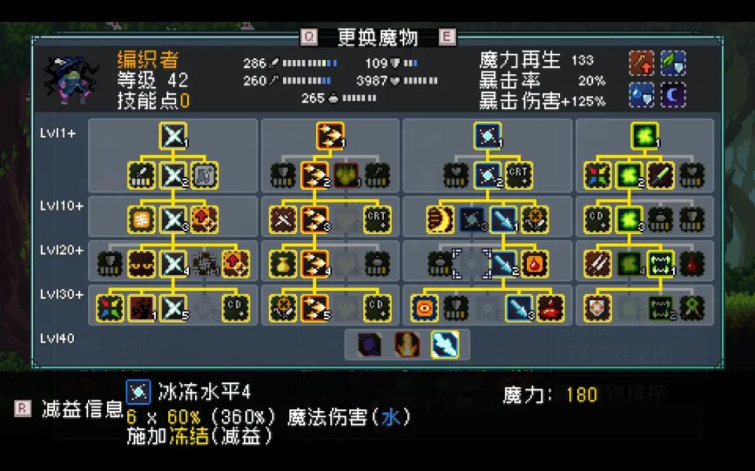 编织者核心词条:充能,暴击,流血玻璃大炮,这玩意本身算是个大脆皮,血量一般但防御真心有点低,即便有暴击防御弥补下也还是很脆,自身是一个经典暴击手模板,你基本可以把它当成一个没有群伤能力的猫人狂战士,甚至两者都能上流血,自身的伤害主要靠两个花式攻击提供的30%伤害加成和暴击优势提供的充能,最后还有流血+重创给对面补刀,自身暗转有失血倒是一个好事,不过考虑到自身的生存能力太差,只要对面快速击杀编织者就能让失血光环消失,因此不转换带灰珍珠也是一种玩法。地图流程
