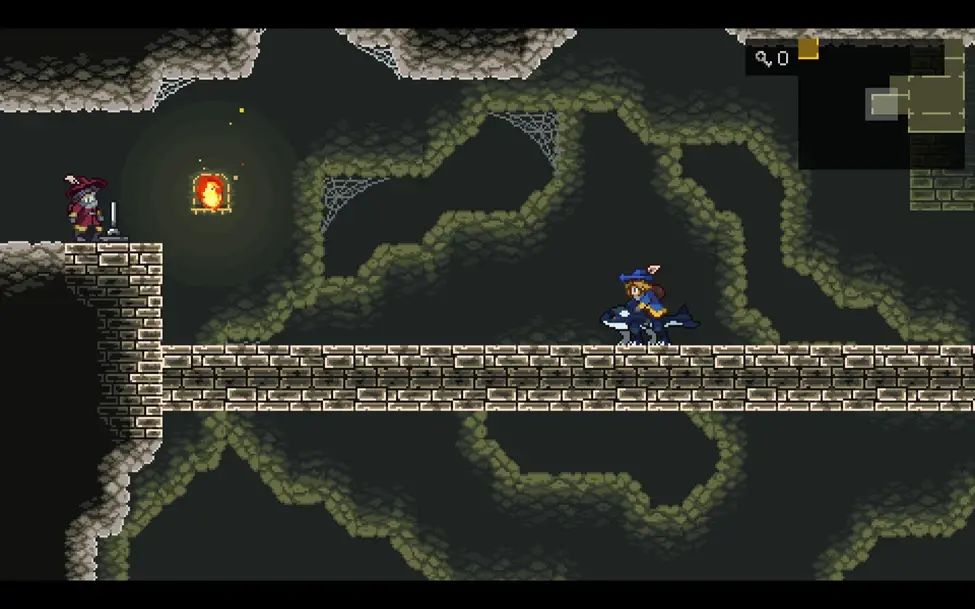 继续往左,大门这里需要用强化飞行魔物飞上来扳动机关才能打开大门。
