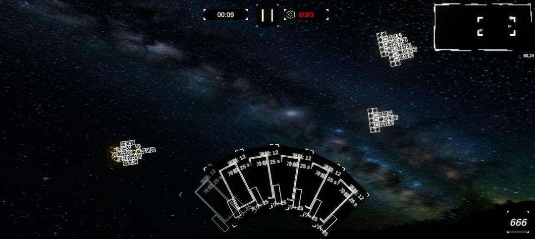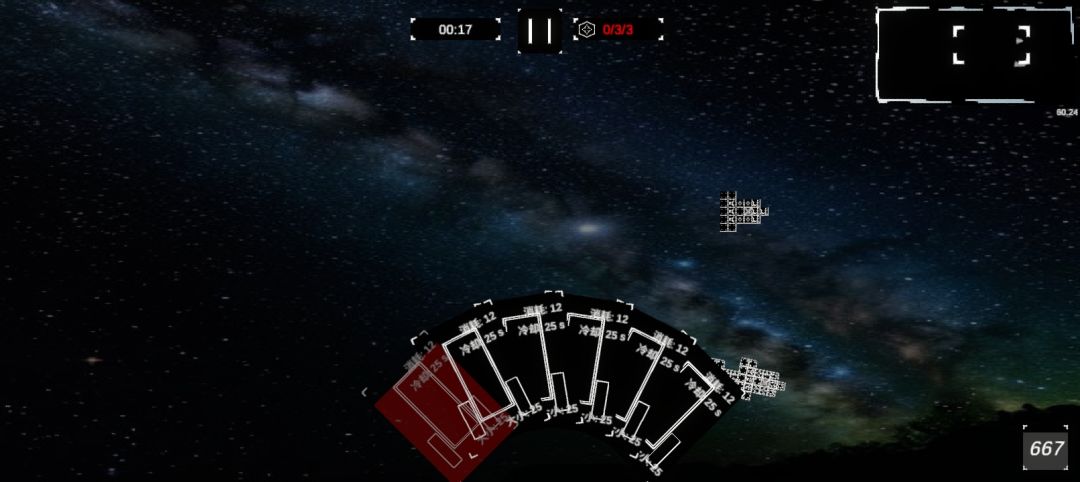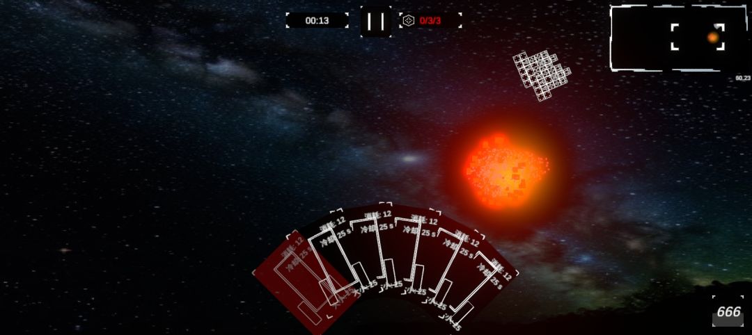二个自爆方块2500伤害将更近的防御方块炸毁,而较远的防御块和核心未击破