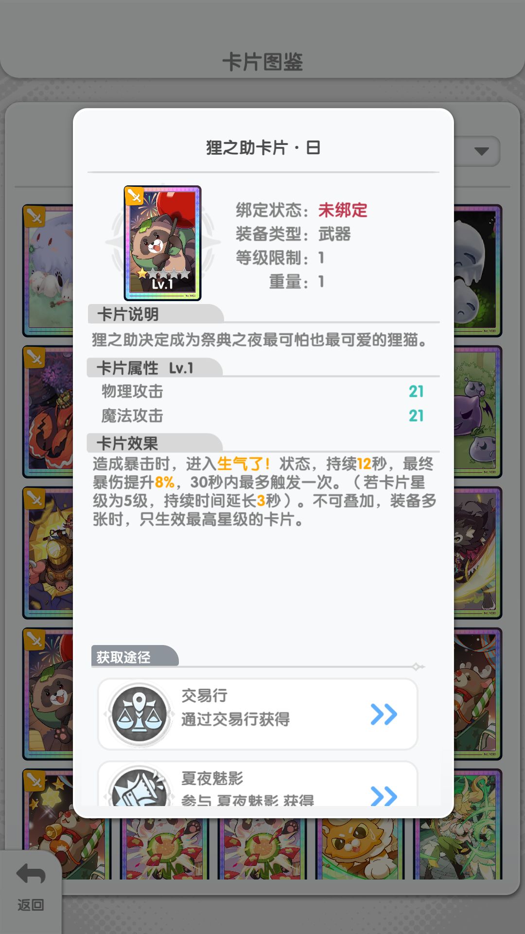 通过主界面【系统】-【卡片】即可查看所有卡片信息,包括效果、获取途径及当前装备状态。