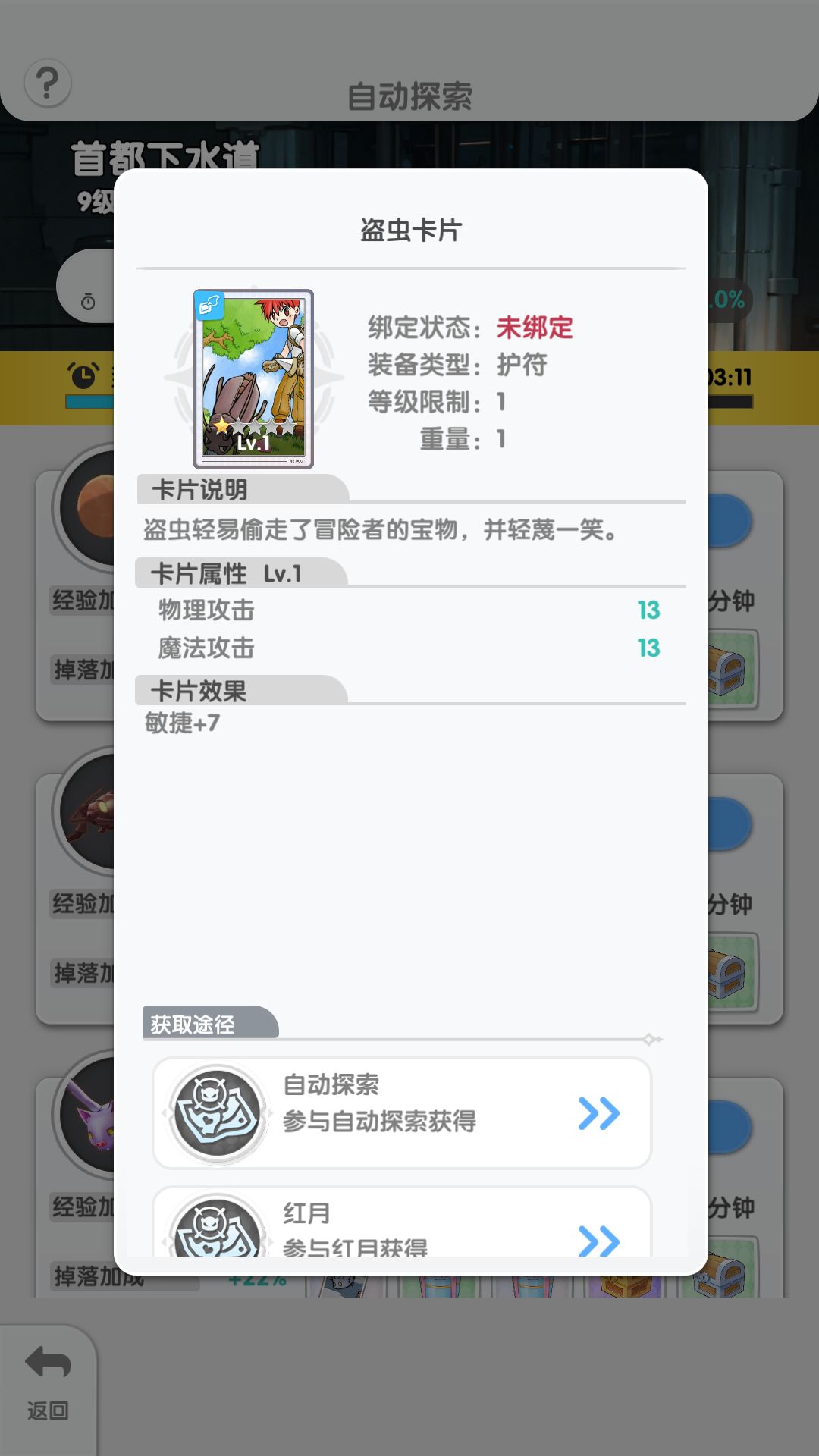 挂机有概率获得随机卡片。