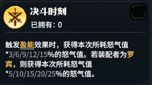 龙石套装5件方可触发最大效果,如罗宾的龙石套装为决斗时刻。
