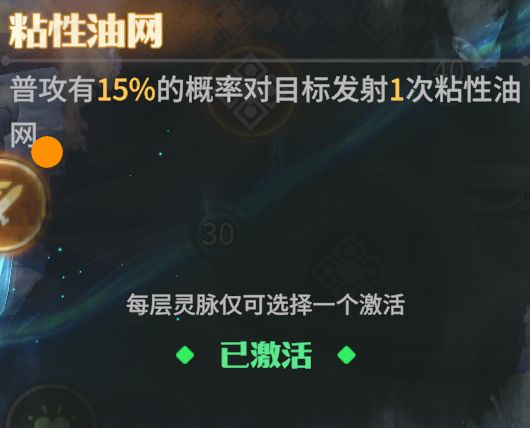 可以看出来同级别上下两条灵脉之间是有较大的功能性差异的,各位玩家可以酌情根据自身思路和战场环境进行自由搭配。同时50级的灵脉,又能与40级的灵脉形成配合,配合之后形成更强的效果。如下图中的普攻对粘性油网中的单位造成额外伤害。