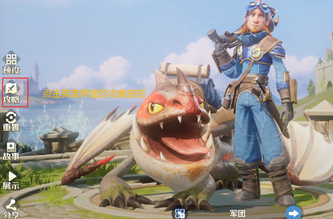 1、点击英雄界面查看攻略