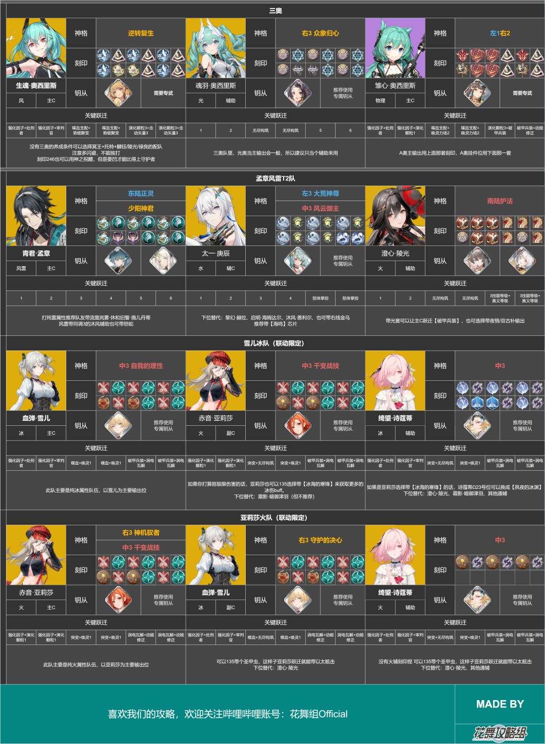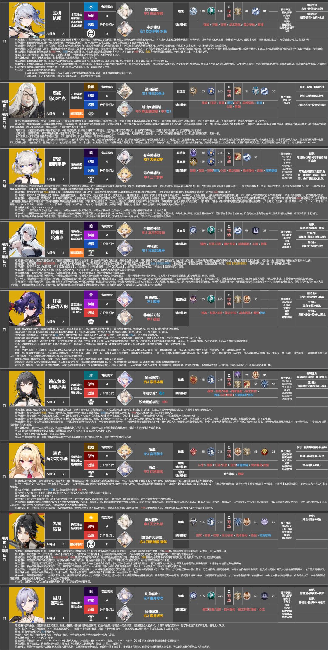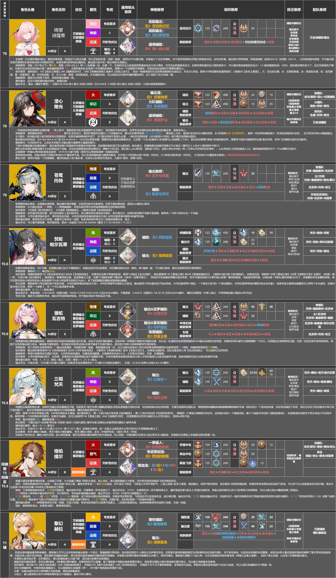 本推荐培养榜由花舞攻略组&深空之眼wiki管理员协会共同制作,内置浓缩角色攻略,附带上配队推荐表和跃迁推荐表,大家可以自行暂停查看,也可去评论区下载原图来查看。