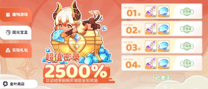 炼金(魔物):普通 2 积分 ; 高级 10 积分;限定命运up 15 积分。