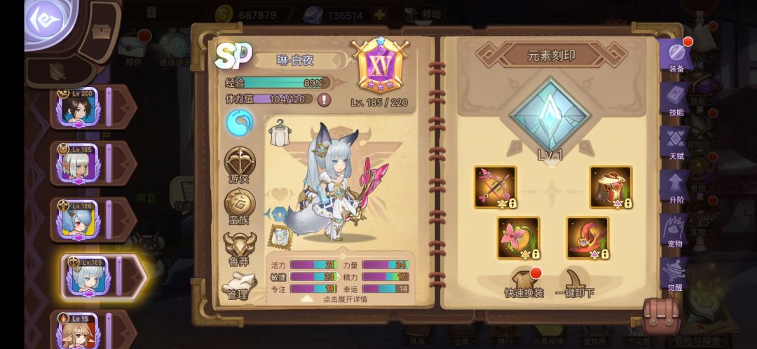 装备:满天花雨(附魔暴击率),锯齿之戒(暴击率),疾走烈焰(命中),海德拉之力(附魔随你喜好。前期暴击率不够就用4-10的战场之风)从装备附魔能看出来,白夜及其需要的属性就是命中与暴击率越高越好。攻击力30万就达标了。