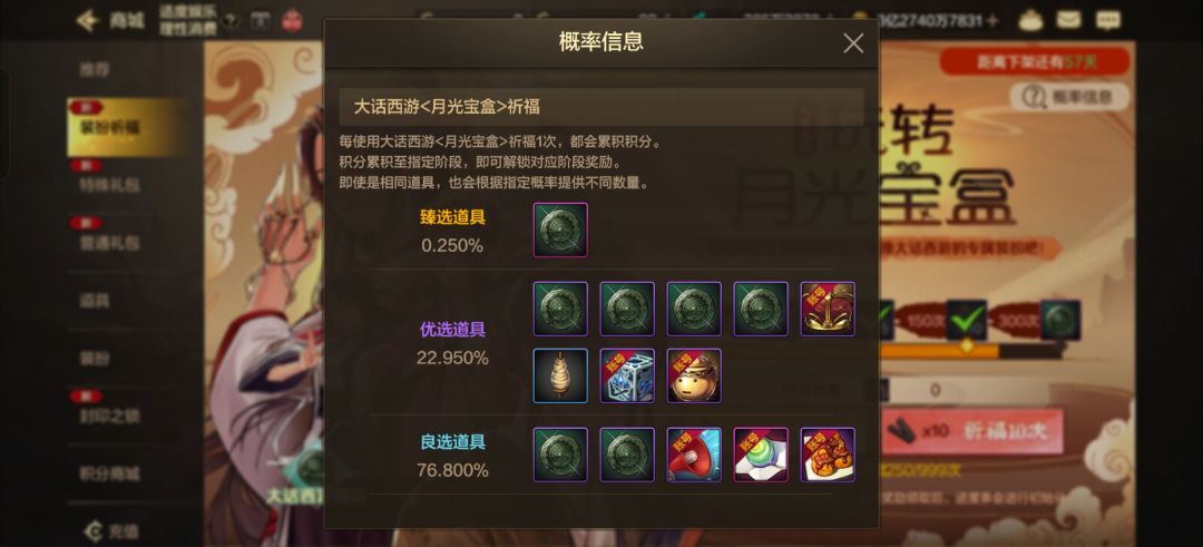 兑换商店预览:大话西游之盖世英雄宝箱: