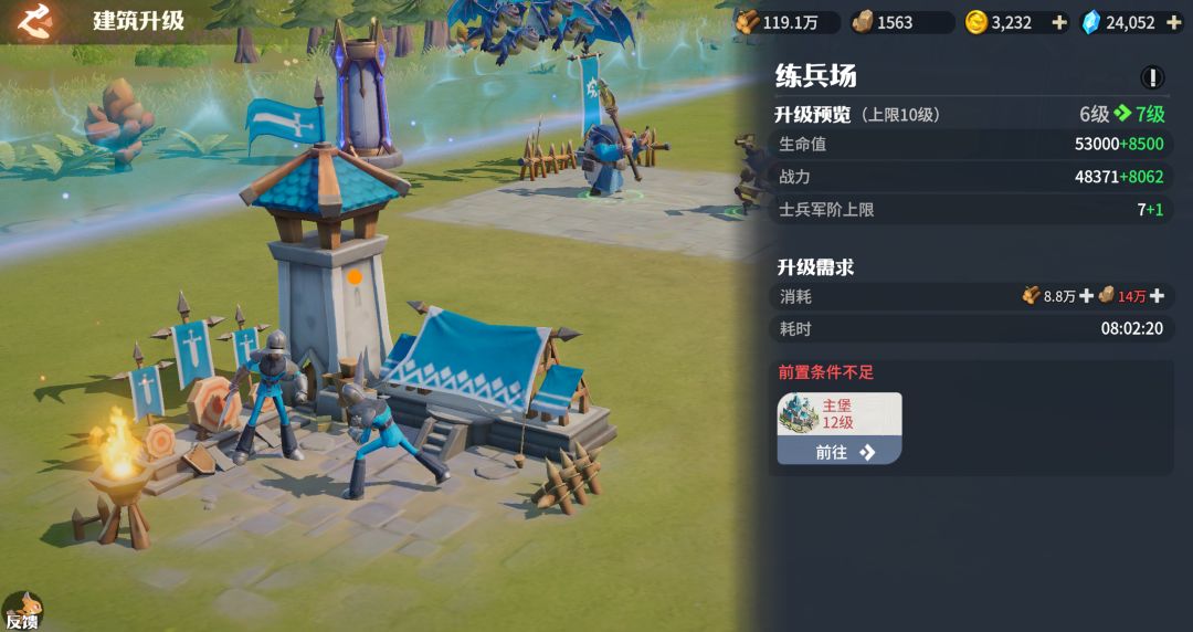 练兵场:训练士兵、升级后提升士兵军阶上限