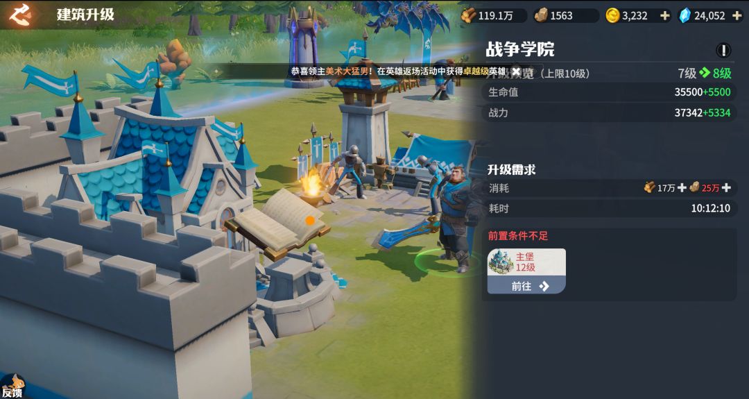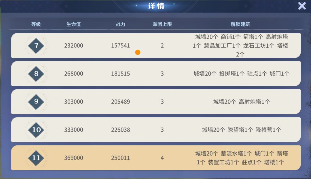 建造后解锁全新系统,升级后能够获取更多兵力、资源、英雄属性等。
