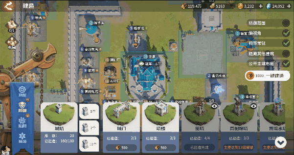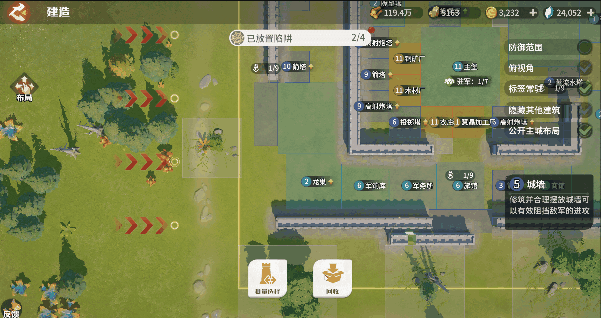 建筑的布局思路各不相同,领主可以根据自己的策略摆出更有效的布局,如果难以抉择,可以使用一键建造系统进行自动布局。