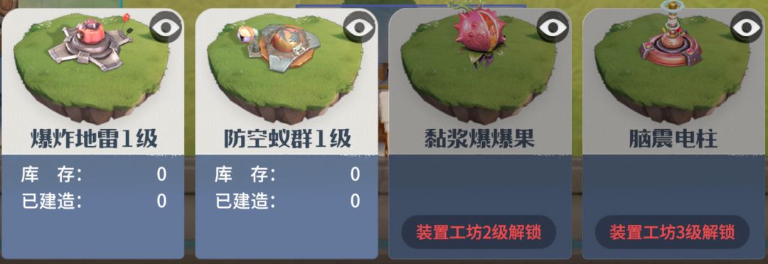 建筑分为功能类、防御类、陷阱类和装饰类。